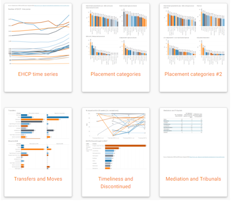 Within the East Midland’s sector-led improvement is a commitment to share data to inform the timely and accurate analysis of outcomes within the region. This includes the in-year, quarterly sharing of a defined set of social care, early help and school admissions data. Leicestershire LA hosts these data within a Tableau account, providing a wide suite of interactive charts and graphs. The national data published within LAIT is also available for analysis within Tableau. Please see below an example image of what these reports look like.
